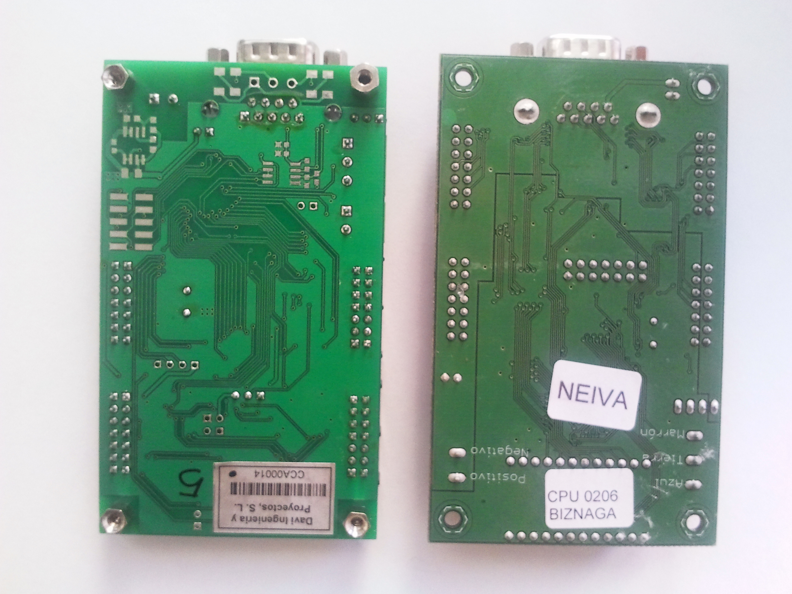 La empresa colmenareña Davi Ingeniería y Proyectos SL es la autora de este plagio. En la siguiente fotografía se muestra las dos tarjetas juntas. Se puede observar que ambas son idénticas en tamaño y forma. Los conectores y su pin-out son del mismo tipo y están emplazados en sitios similares. Los taladros de fijación también están ubicados en el mismo lugar. Además ambas muestran un sky-line muy parecido. Esto evidencia una intención clara de hacer estas dos tarjetas compatibles.