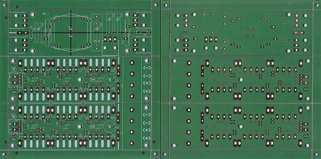 La PCB desarrollada es un panel de tres placas divididas en V-CUT. Una es para la distribución del cableado de 220VAC y otras dos idénticas para distribuir la continua.